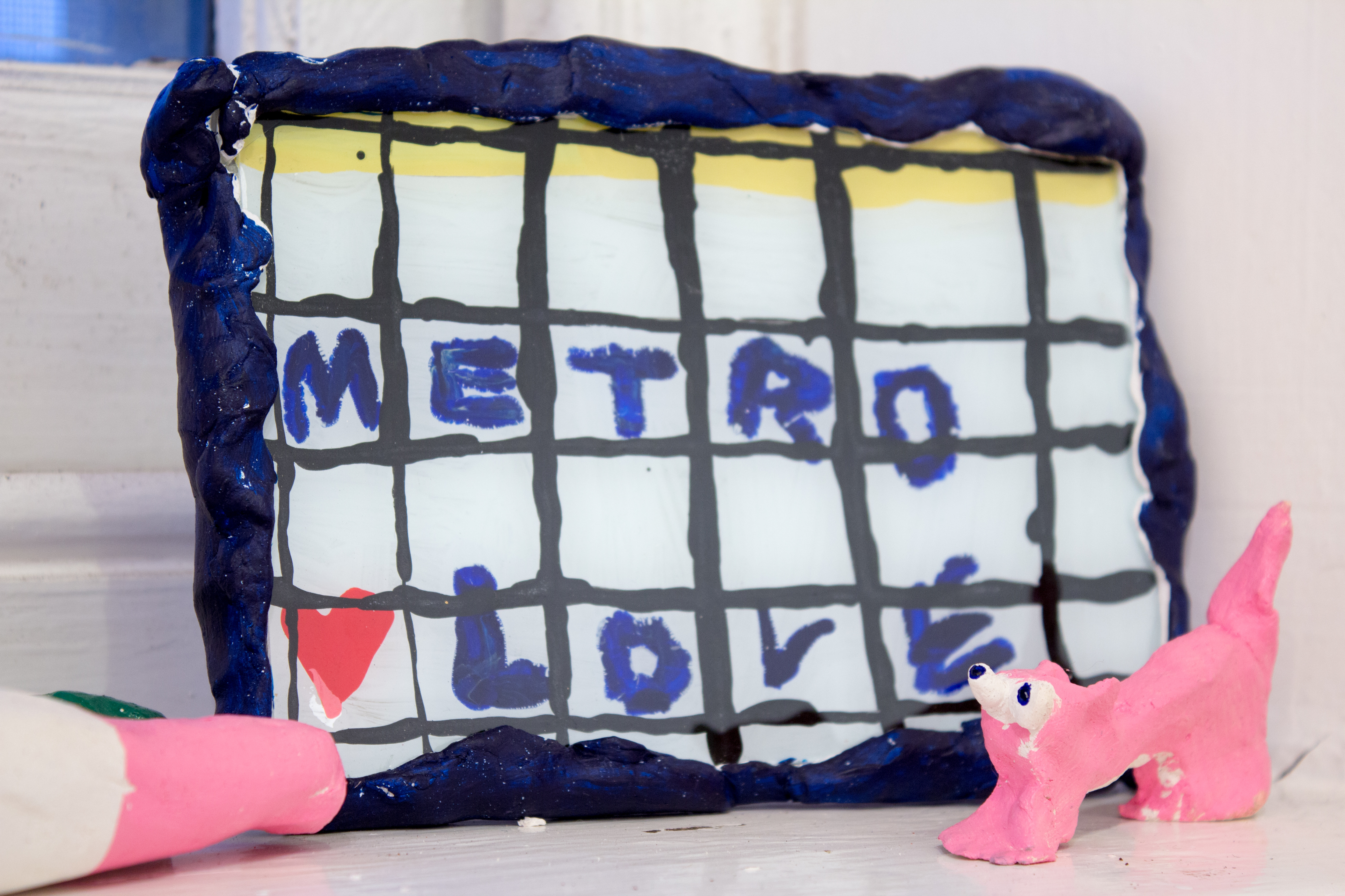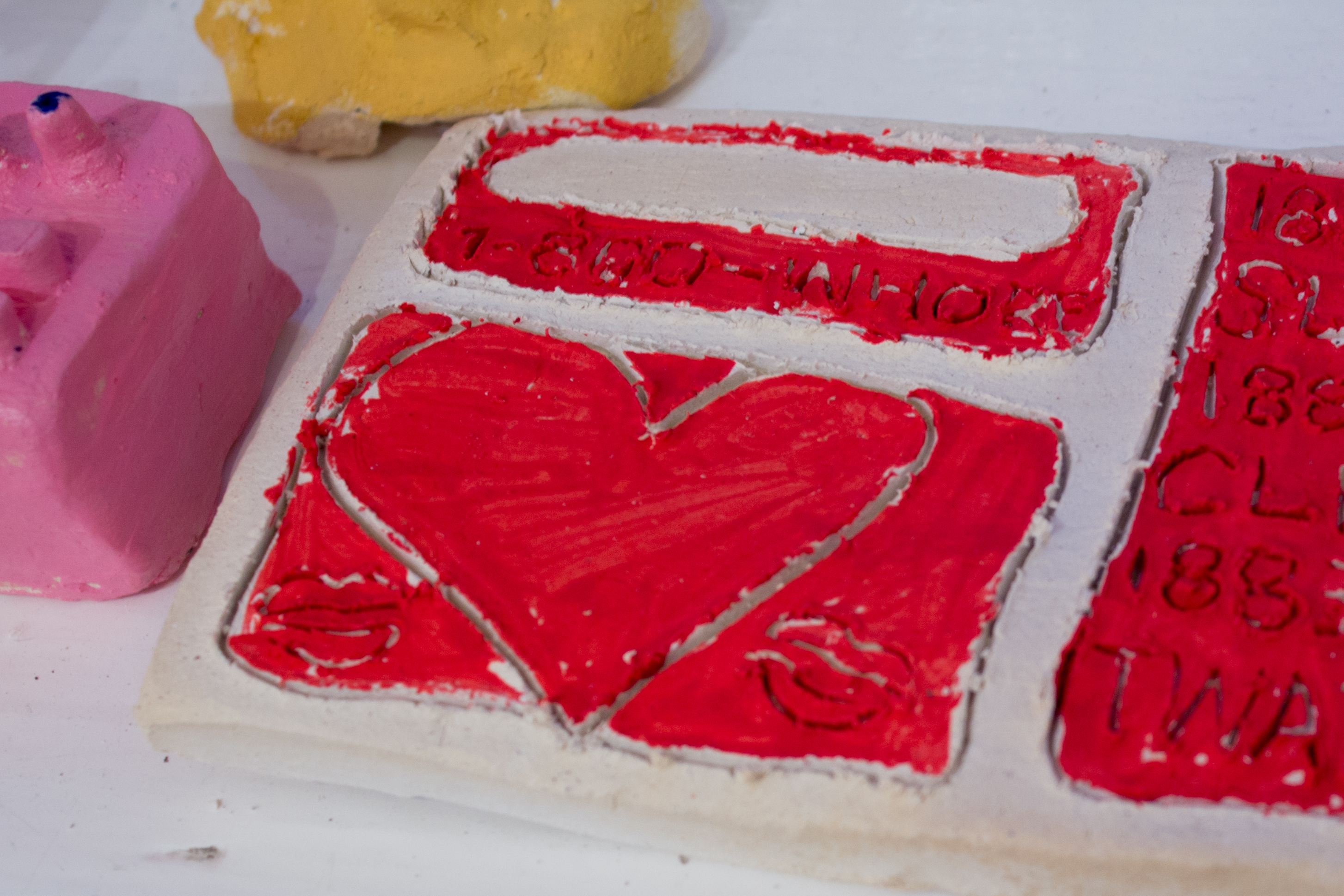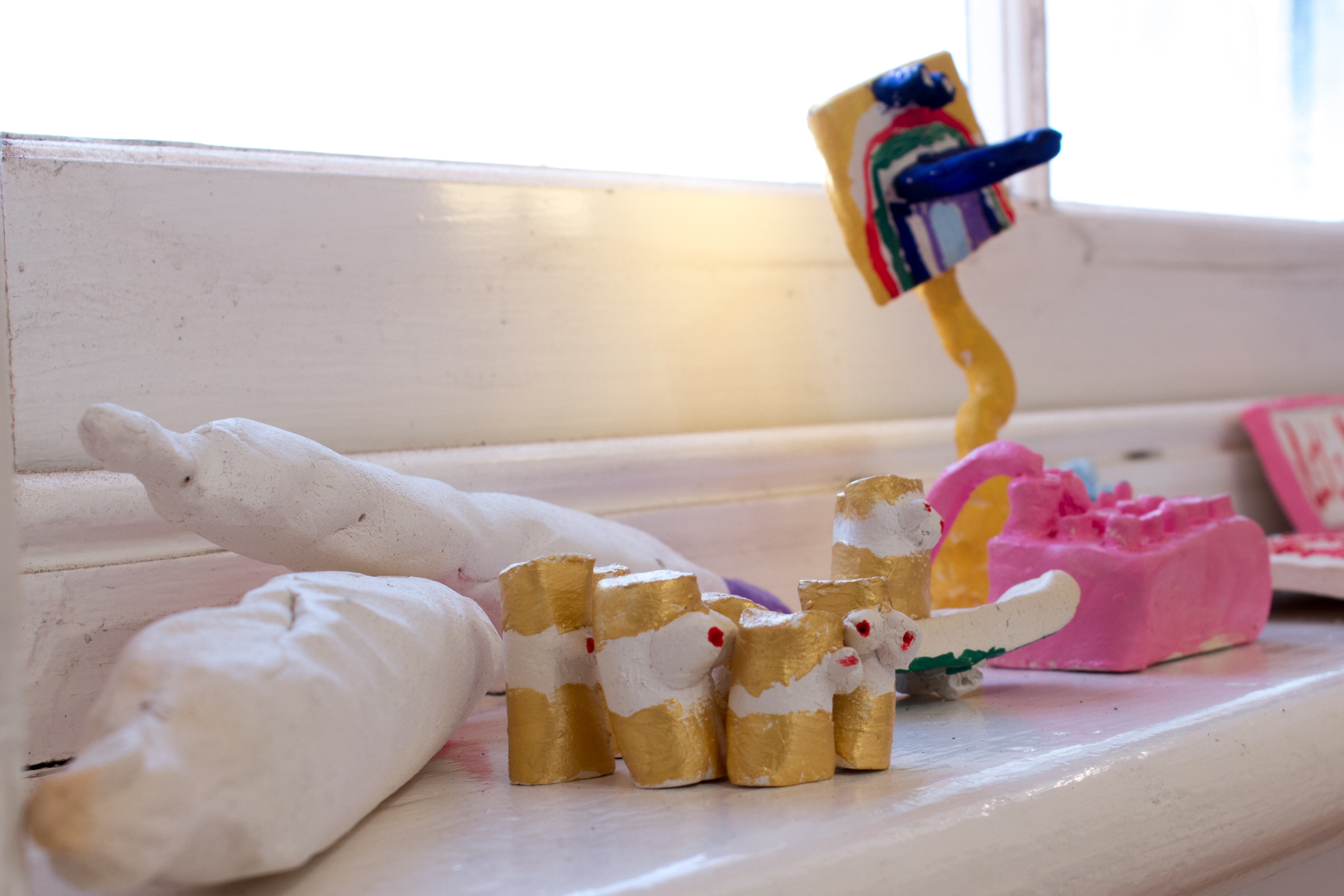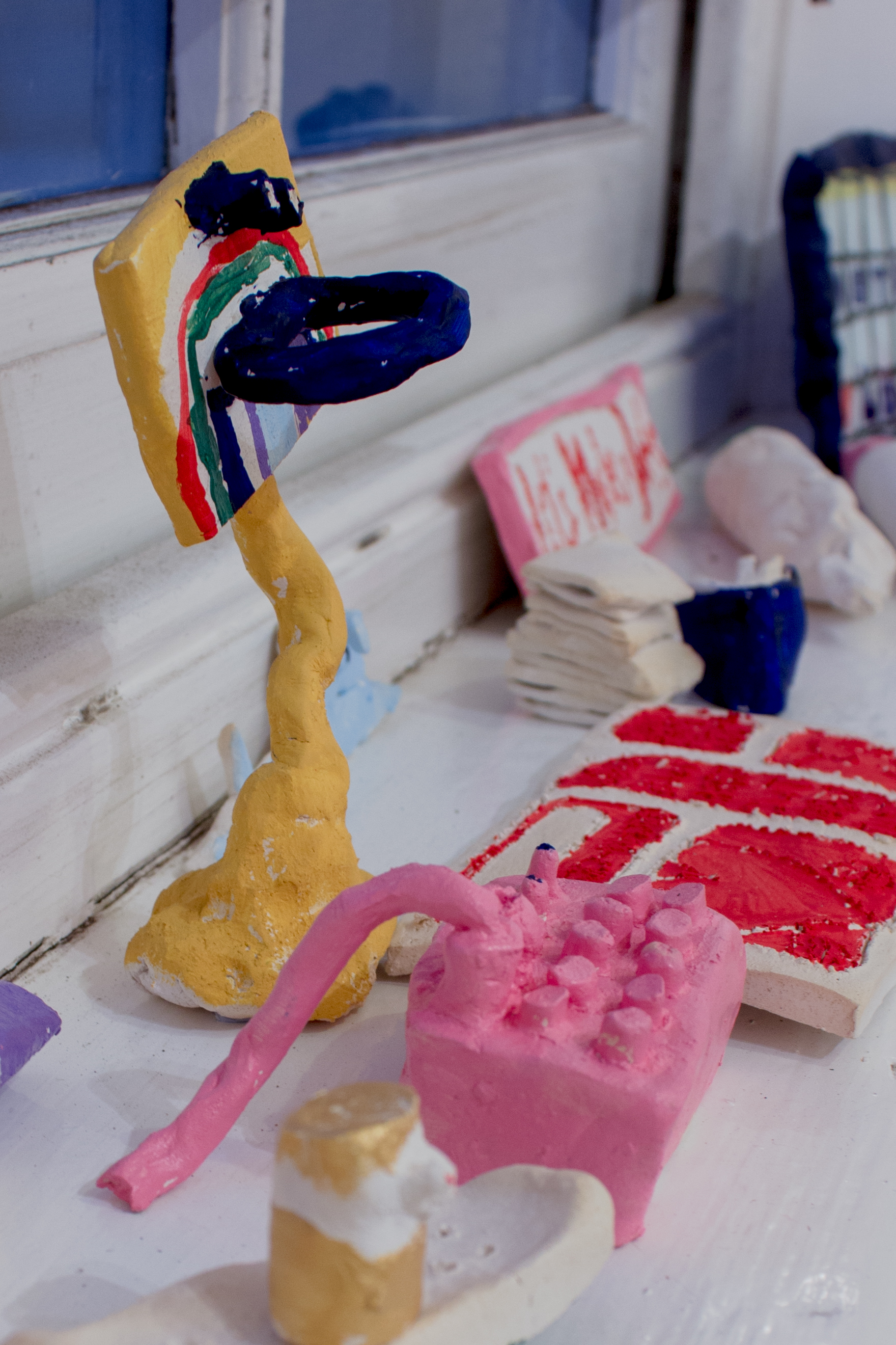 Installation view of (L-R) clay artwork, Island of the Aswang, Janet Jackson World Tour and Christopher